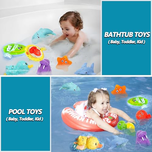 - SKILLS DEVELOPMENT: Infant Bath toys with rich color combinations and soft touch help baby's color recognition and sensory development. Enhance your kid's fine motor and hand-eye coordination by twisting the wind-up toddler toys, netting and sprinkling