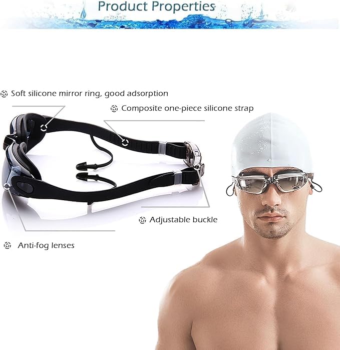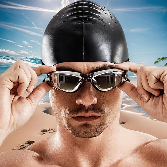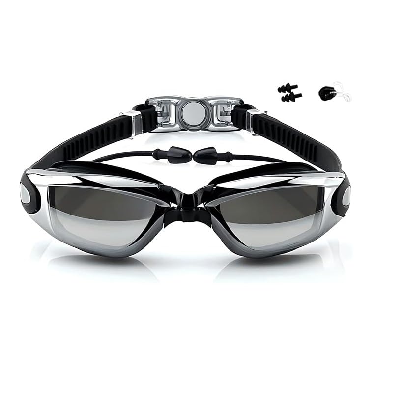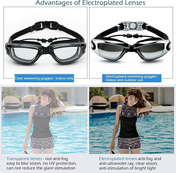 fashion mania - No - Logo Electroplated Black Swimming Goggles Adult Youth Big Frame Hd Waterproof Anti - Fog Swimming Eyewear