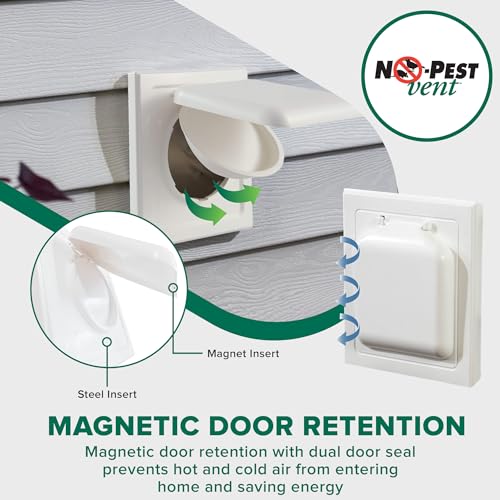 no-pest vent - NO-PEST VENT, Exclusive Dual Door Dryer Vent Cover Outdoor 4 inch or Bathroom fan, Made in USA w Highest UV Resistant Plastic in any Outdoor Vent Cover (White, 4 inch W/O Duct Tube)