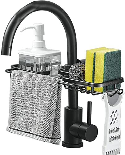 NOAEOU - NOAEOU Sponge Holder for Kitchen Sink,Sink Sponge Holder Sink Basket Brush Holder Faucet Drain Rack for Kitchen & Bathroom Accessories Sink Organizer for Soap Sponge (Black)