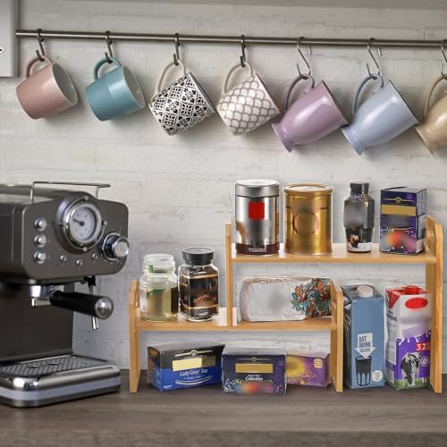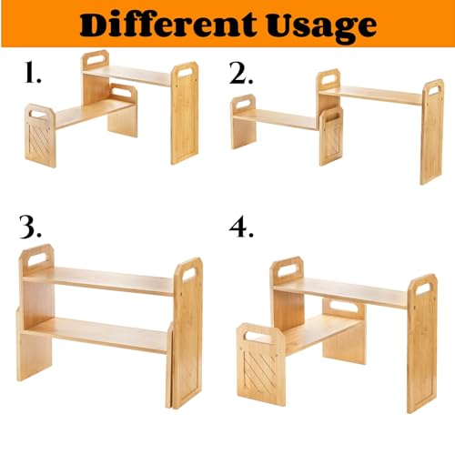 - Flexible Design: Featured with a 2-tier design, separable kitchen storage shelf offering ample storage space that can be expanded or stacked according to your needs. You can arrange the shelves in a stacked position or in an L shape to accommodate various seasoning jars and tableware. It is versatile and can be used in the kitchen, bedroom, or bathroom.