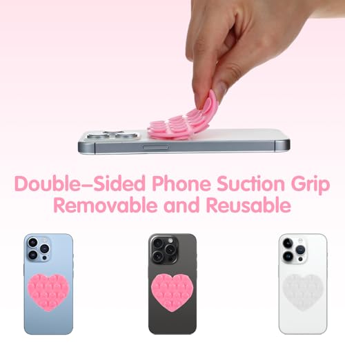 - Package Contents: You will receive 2 heart-shaped silicone grippy phone suctions, pink and white, which can use with your different styles of mobile phone cases