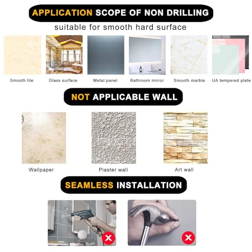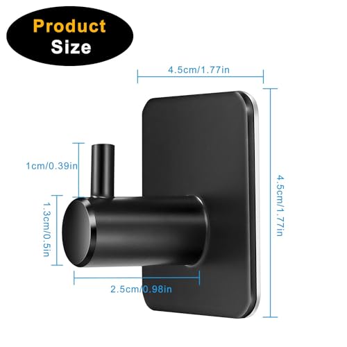 - [Upgraded Version Strong Self-adhesive]This bathroom towel hook is attached Strong sticky backing.The maximum load-bearing capacity is 15Lbs / 6.8Kg. The coat hooks can help keep your item securely in place even though use it in a wet place. Warm Tips,Suitable for smooth and hard surfaces, such as stainless steel, wood surfaces, metal surfaces, marble surfaces, plastic surfaces, glass surfaces, ceramic tiles, etc. Not suitable for painting walls, wallpaper and rough surfaces.