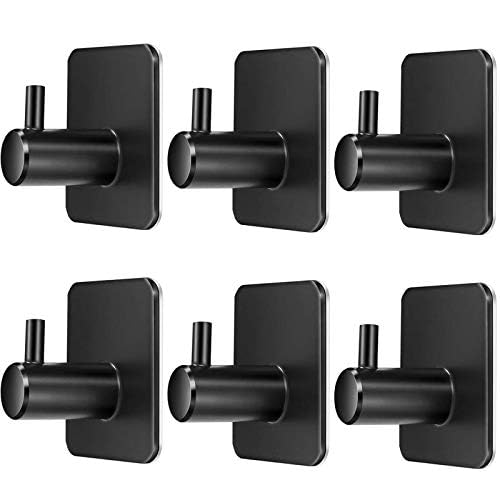 Nolimas - Nolimas Self Adhesive Towel Hooks, Heavy Duty Wall Hooks, Waterproof Sus 304 Stainless Steel Hooks for Hanging Coat,Hat,Towel Robe Hook Rack Bathroom and Bedroom, Matte Black-6 Packs