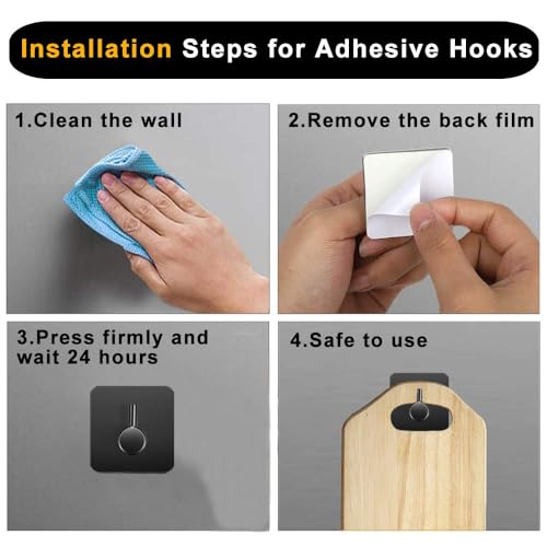 - [Easy To Install & Remove]This no drilling towel hook with strong self Adhesive, strong adhesiveness and protects against water. Just peel off film of adhesive pad and stick it on the smooth wall surface, then press for several seconds to make it stable. It is recommended to place it 24 hours before placing any items to provide additional strength and durability.In addition, you can use a hair dryer to heat the hook and easily remove the wall hook without leaving glue.