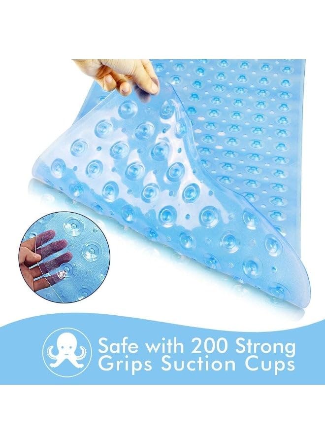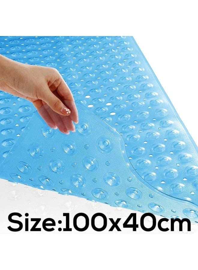 generic - دواسة حمام مضادة للانزلاق مع اكواب شفط، امنة وشفافة ومقاومة للماء مصنوعة من بلاستيك PVC الناعم، واقي ارضية حوض الاستحمام، تصميم مضاد للانزلاق، 100 × 40 سم، للاستخدام المنزلي الصحي (ازرق)