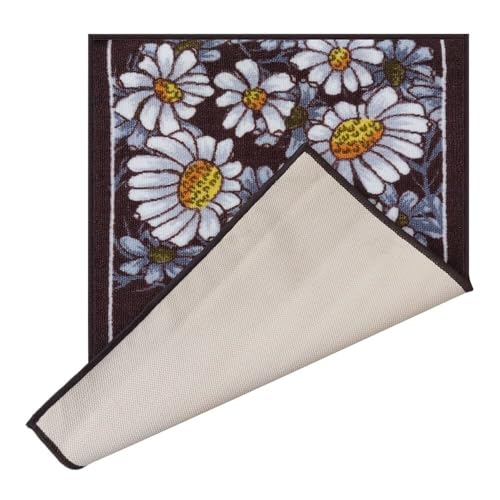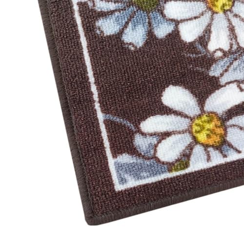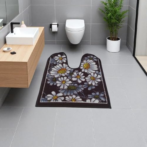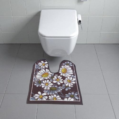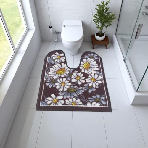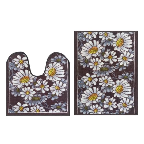 Generic - طقم دواسات حمام مضادة للانزلاق مكونة من قطعتين (مقاس السجادة 57 × 75 سم على شكل حرف U مقاس 57 × 57 سم) بنقشة زهور الاقحوان - بني