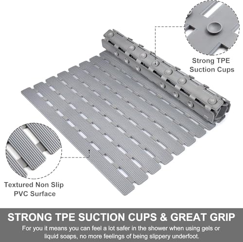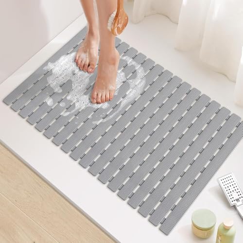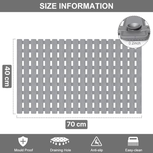 Generic - دواسة حوض استحمام مضادة للانزلاق بفتحات تصريف - تصميم عملي وسهلة التنظيف (جراى)