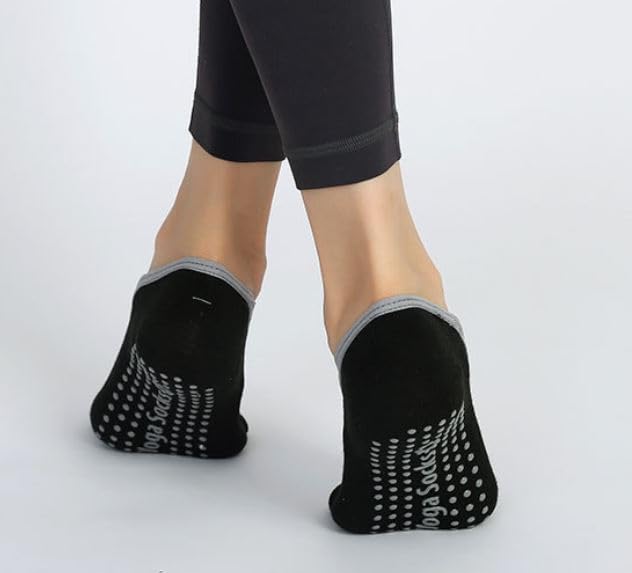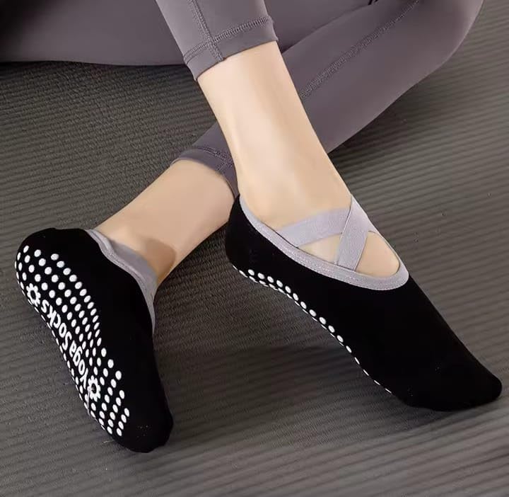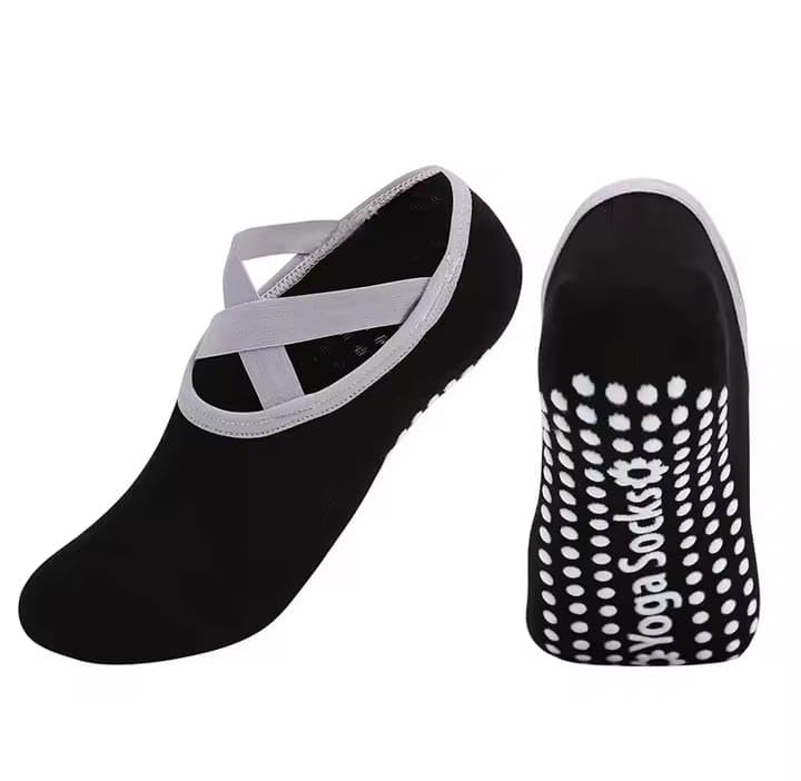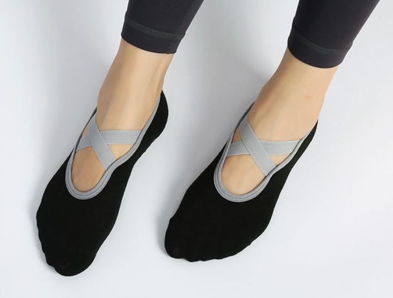 Generic - Non-Slip Grip Yoga Socks with Cross Straps, Black and Grey, Grip Dots Pattern