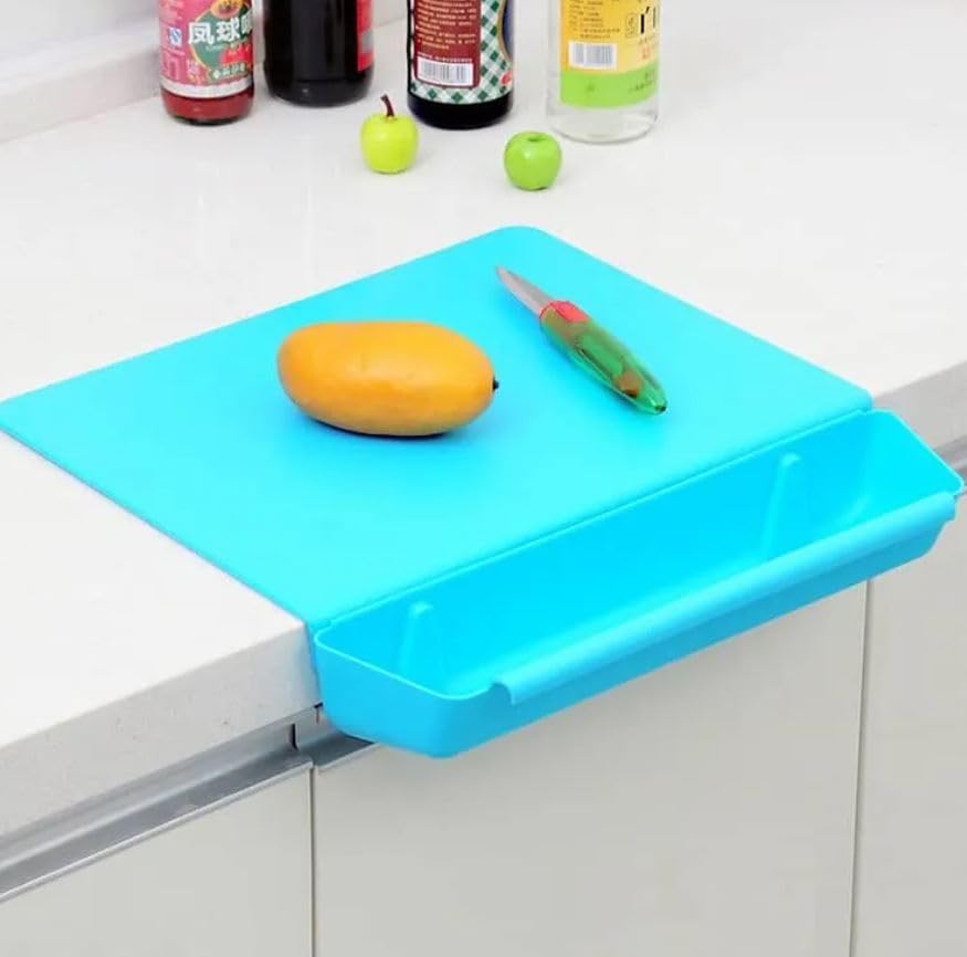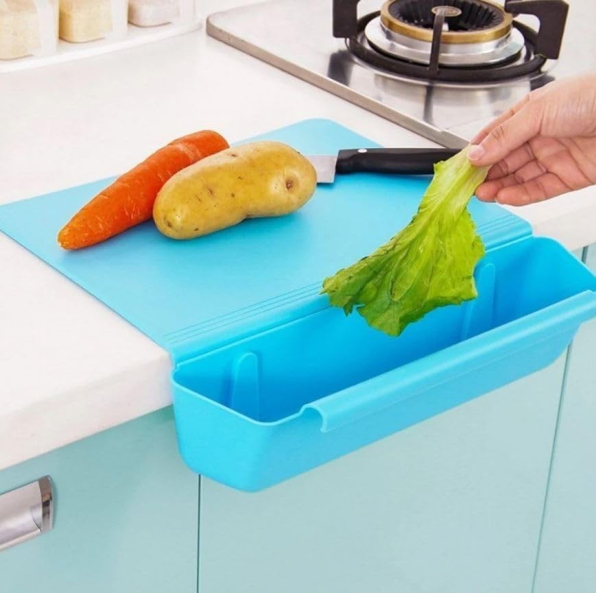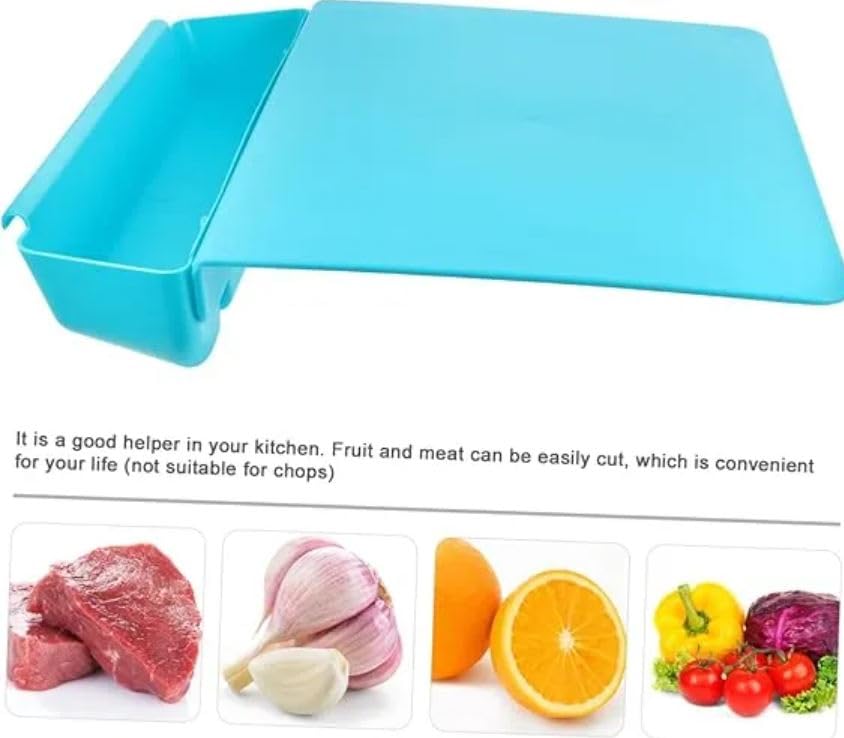 - TWO-IN-ONE DESIGN: Features a flat cutting surface with an integrated collection drawer underneath for convenient food prep and waste collection