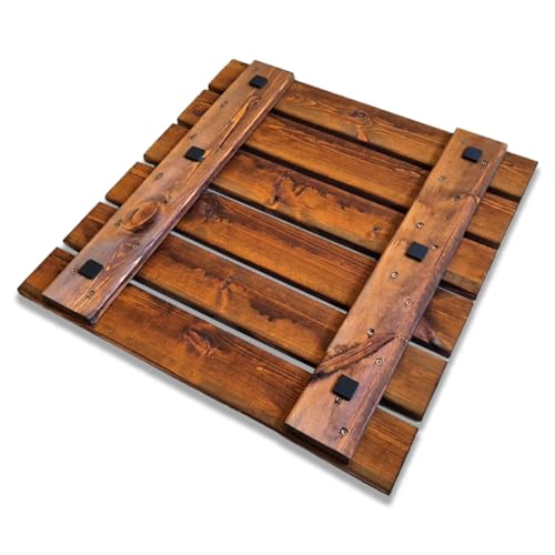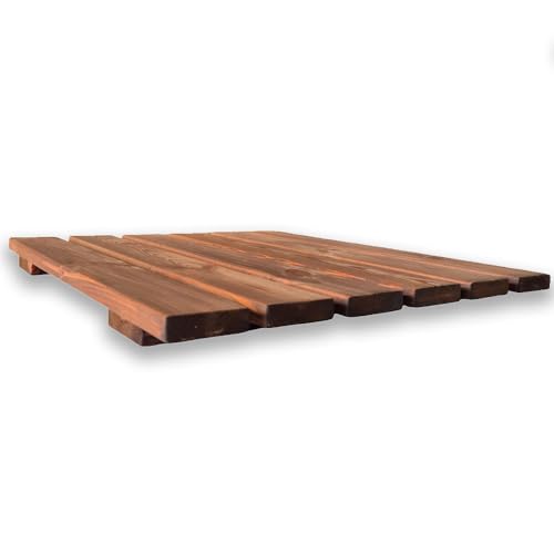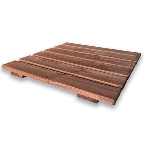 SUNWOOD - دواسة حمام مضادة للانزلاق مقاس 60 × 60 سم، مصنوعة من خشب الصنوبر المشبع، سمك 4 سم، بني (60 × 60 سم)