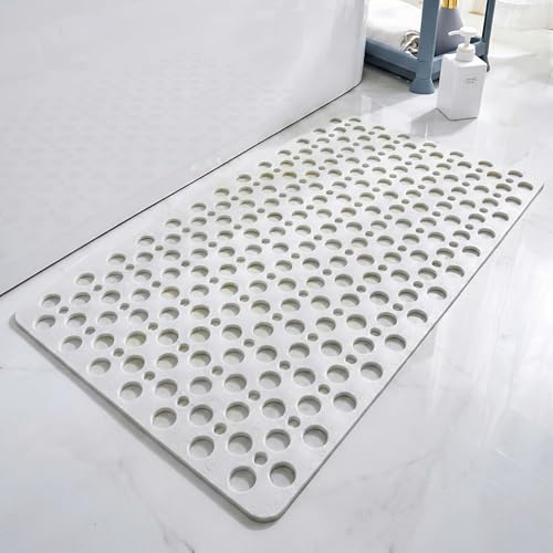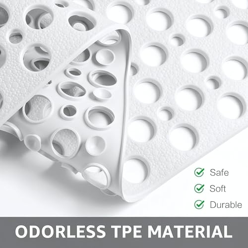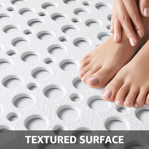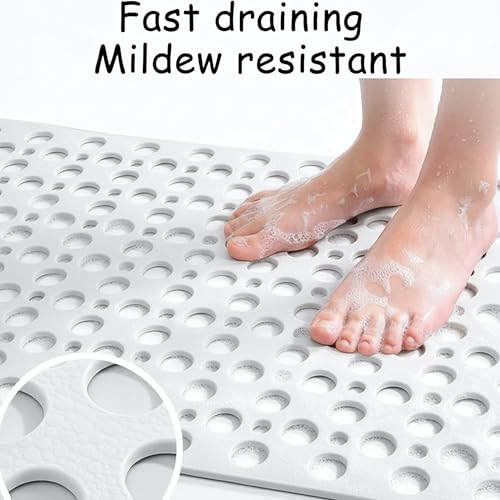 Generic - Non-Slip Shower Mat with Built-in Foot Brush – Safe Bathtub Mat with Quick Drainage – Mildew Resistant and Quick Dry (White)