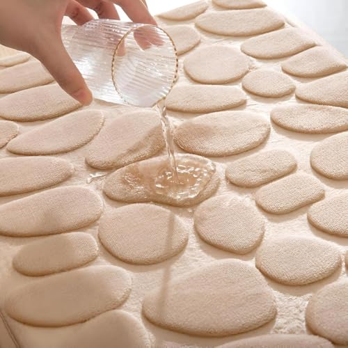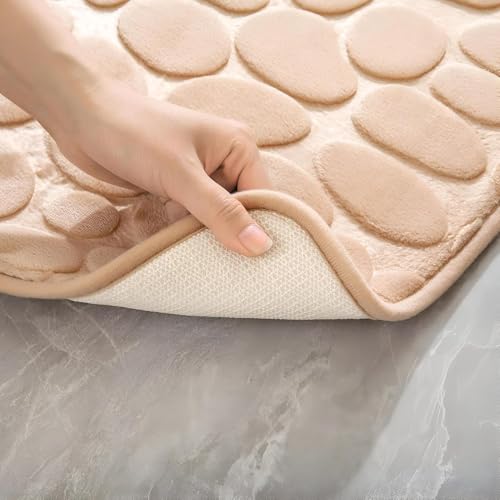 Generic - Non Slip Washable Memory Foam Bath Mat Perfect for Bathroom and Shower, Soft Coral Fleece Absorbent Bath Mat for Kitchen, Beige