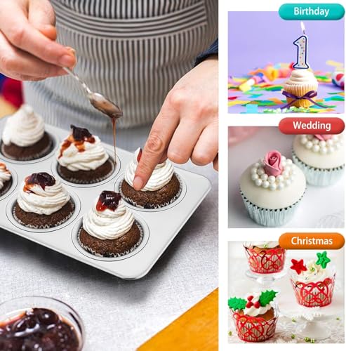 - ✅【Non-Stick Surface】The superior non-stick coating allows cupcakes, muffins, and mini cakes to release effortlessly without tearing or sticking, making baking less stressful and cleanup fast and easy, so you can enjoy perfect baked goods every time without wasting ingredients. 🧁