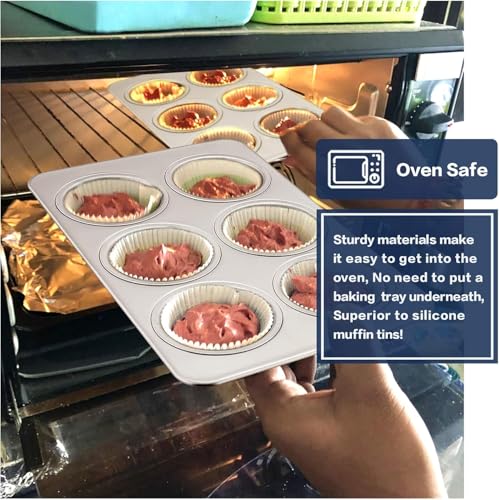 - ✅【Easy to Clean】Thanks to the smooth non-stick surface, cleaning this heavy-duty muffin pan takes just seconds with a soft sponge or cloth, reducing post-baking effort and ensuring your pan stays in pristine condition for long-term use, saving you time and effort in the kitchen. 🧼