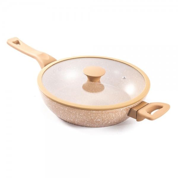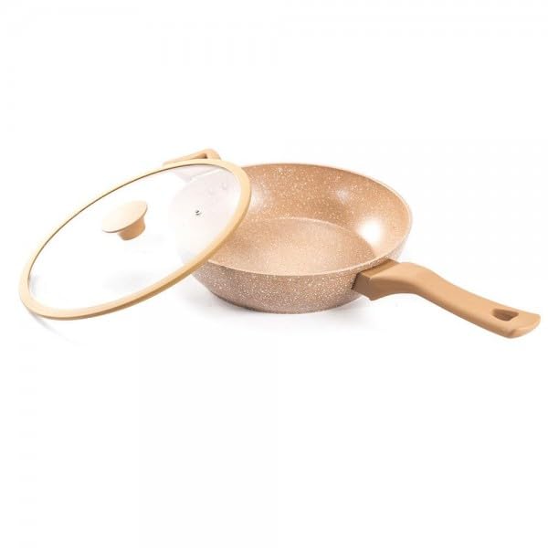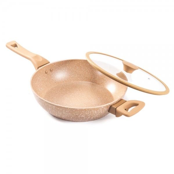 Generic - Non-Stick Ceramic Frying Pan, 28 cm, with Glass Lid, Marble Coating, Heat-Resistant Handle - ALRIMAYA