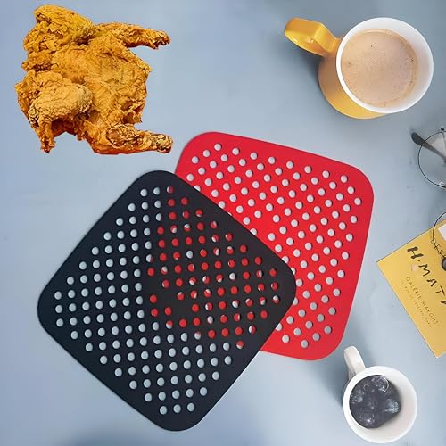 Generic - بطانات مقلاة غير لاصقة - وسادات سيليكون قابلة لإعادة الاستخدام للطهي والخبز، مقاومة للحرارة ومرنة، وصديقة للبيئة، ومثالية لمقالي الهواء والأفران (2, مربع)