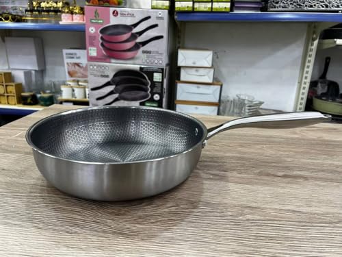 - PREMIUM DESIGN: 28-centimetre stainless steel frying pan featuring innovative honeycomb-textured cooking surface for enhanced non-stick performance