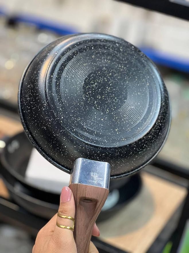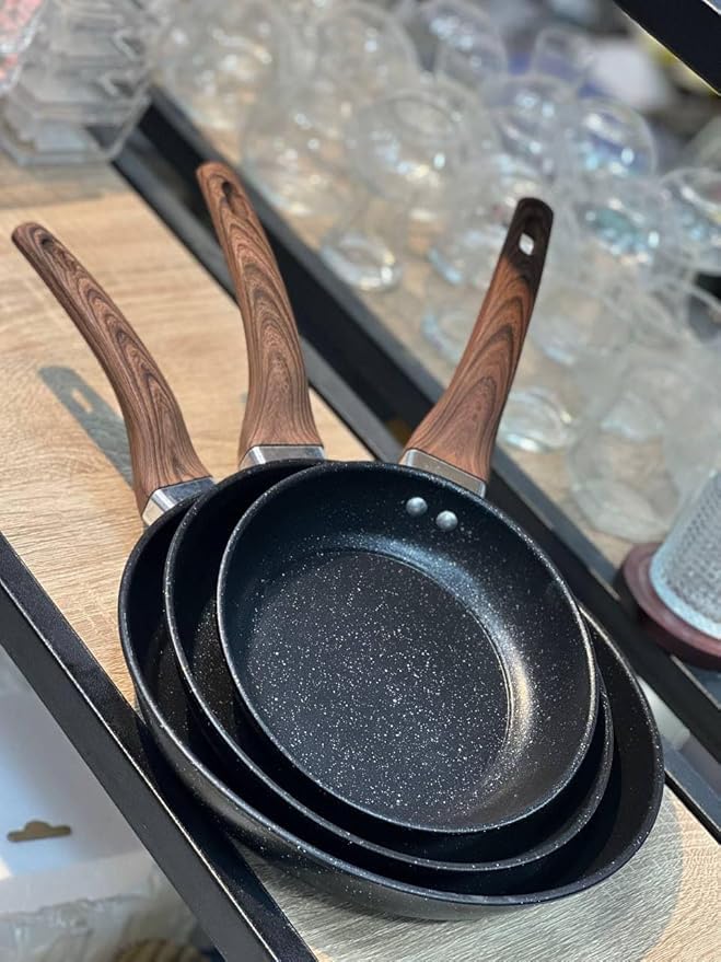 Generic - طقم طاسات قلي جرانيت غير لاصقة بمقبض خشبي، 20/24/28 سم، 3 قطع