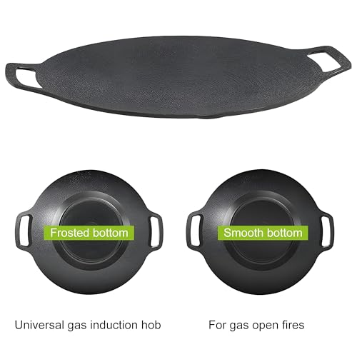 - NOT STICK KOREAN BBQ Pans :The surface is designed with non-stick wheat coating and the bottom of the pan is flat, smoke-free and not easily burned. Allows you to get better food without spending too much time