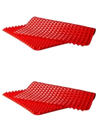 Generic - Non-Stick Silicone BBQ Mat – Heat Resistant Baking Sheet for Grilling, Roasting & Frying | Reusable, Easy to Clean Cooking Mat for Oven, Air Fryer & BBQ (40x30cm, Red) (Red (two packs))