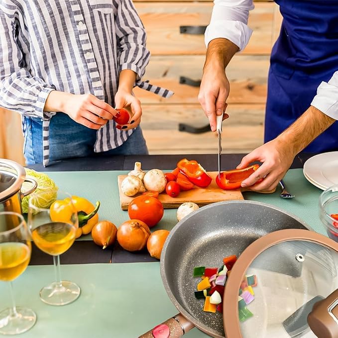- Non Stick Frying Pan Set With Wok: Make eggs, pancakes, and quick stir-fry without the sticking stress. Food releases easily, so cooking feels smoother and uses less oil in everyday meals.