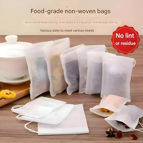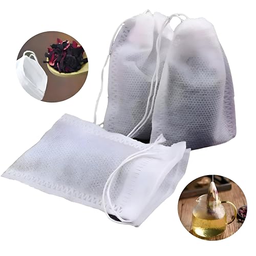 Generic - مرشح غير منسوج - أكياس ترشيح الشاي الفارغة بسلاسل شد لأوراق الشاي المفتوحة، الأعشاب والتوابل والقهوة، عبوة 100، متينة وقابلة للتصرف بدون فوضى للاستخدام اليومي في المطبخ.