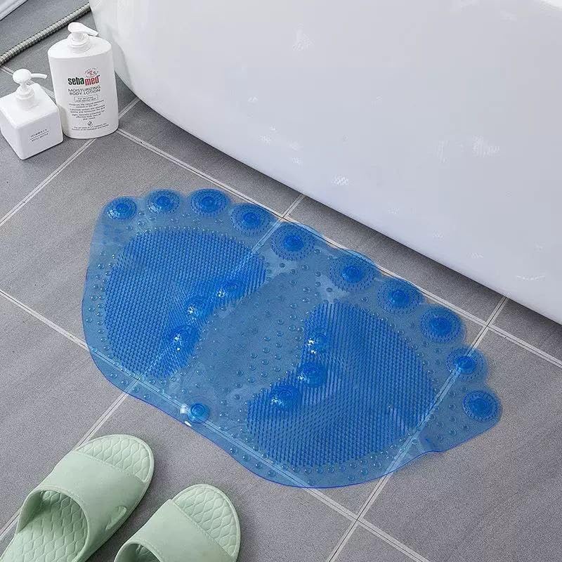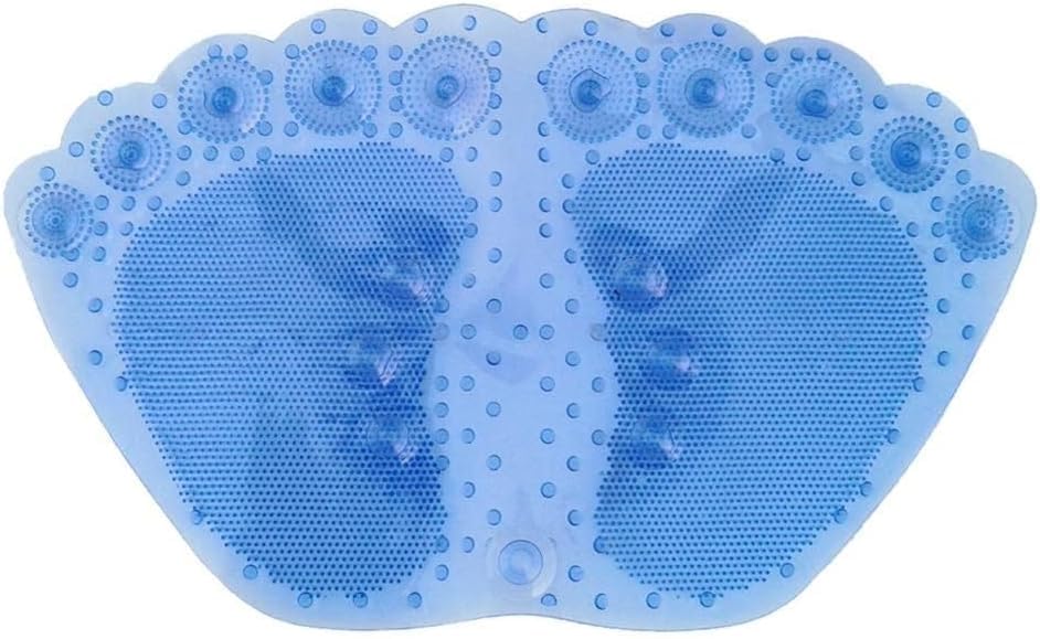 Spaceshoop - سجادة حمام غير قابلة للانزلاق، سجادة حمام غير قابلة للانزلاق مع قاعدة لاصقة على شكل بصمة قدم زرقاء لتدليك القدم للمنزل والحمام والأرضية وحوض الاستحمام (أزرق)