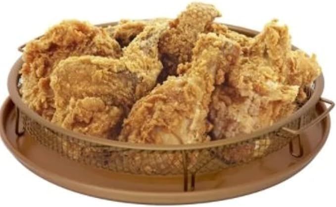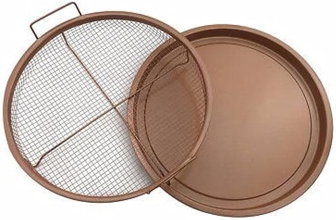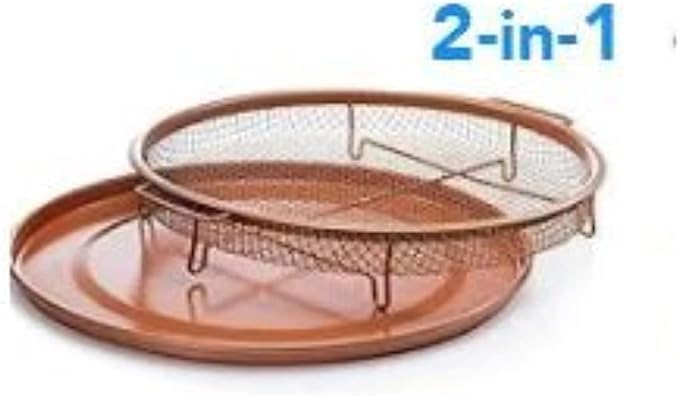 Generic - Nonstick Round Crisper Tray, Copper Oven, Turn Your Oven Into An Air Fryer - 2 Pc Set, Frying Basket And Baking Sheet, Dishwasher Safe, Heat-Resistant