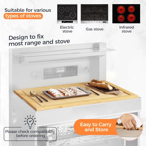 - [Deep Juice Groove Design ] The stove cover is made of Bamboo wood material to ensure its quality and durability. Our stove covers also feature convenient deep juice groove, while their sturdy construction allows you to cut food directly on them, making meal preparation effortless.
