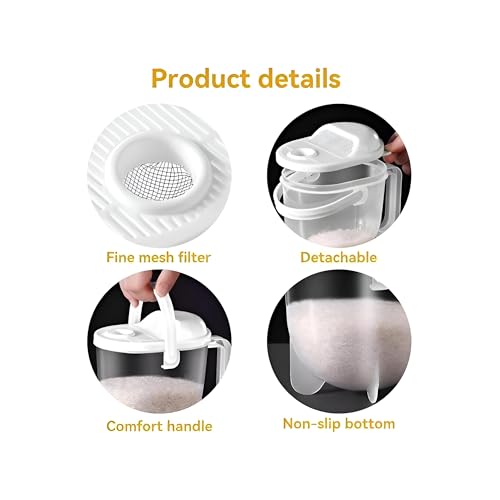 - يتميز المنتج بمصفاة مدمجة وتصريف مدمج يسمح لك بشطف الأرز مباشرة تحت الحنفية وتصريف المياه دون فقدان الحبوب، بينما يتيح لك الهيكل الشفاف مراقبة النظافة والتقدم أثناء الغسيل.