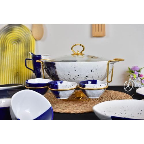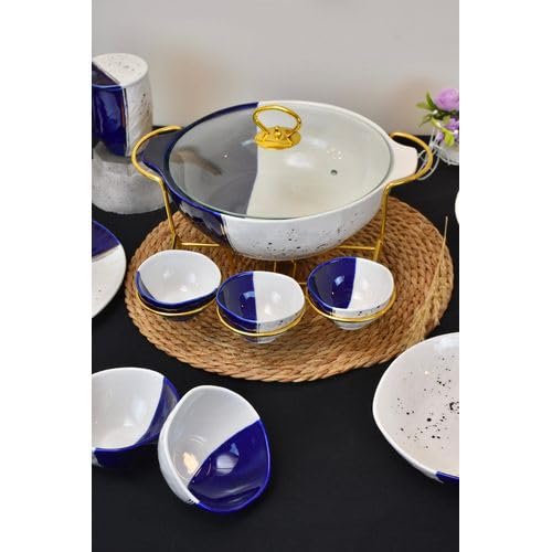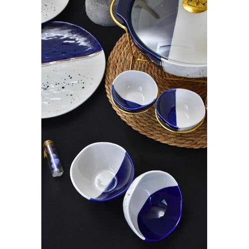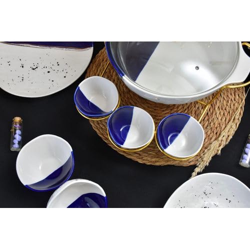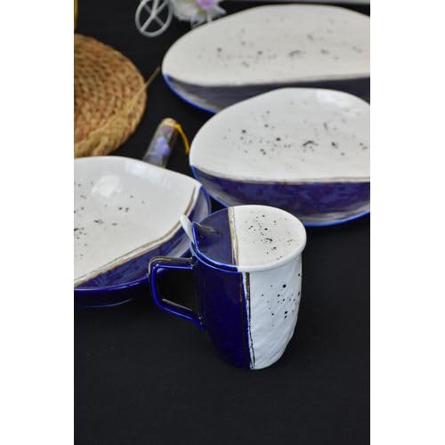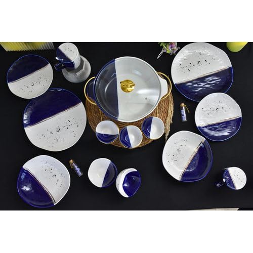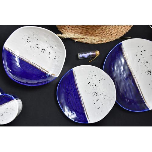NOUR AL-MOSTAFA - طقم عشاء بورسيلين 48 قطعة بالكاسة ابيض * أزرق من نور المصطفي DS381-34WITHE&BLUE