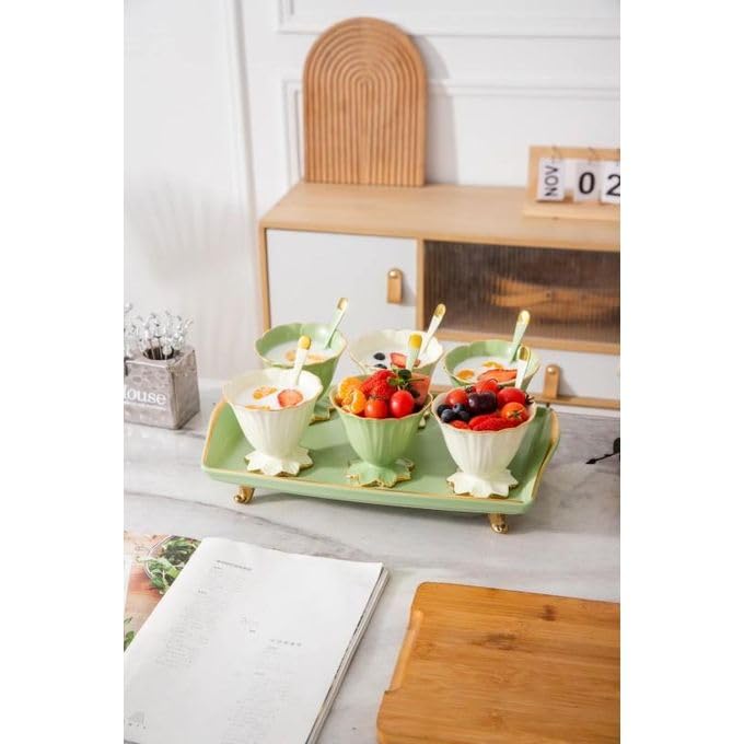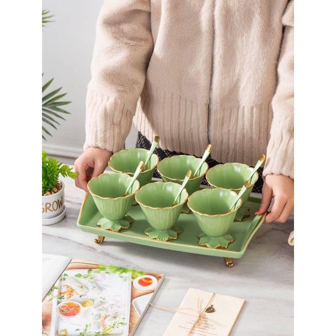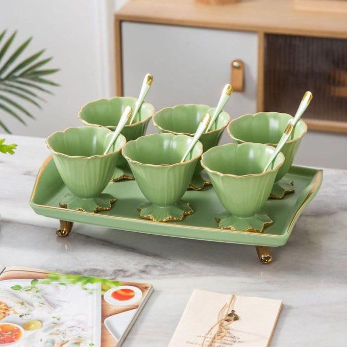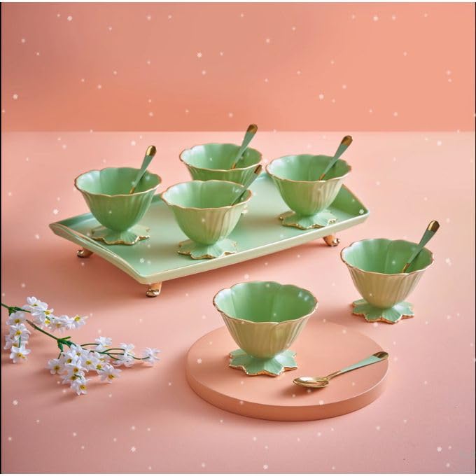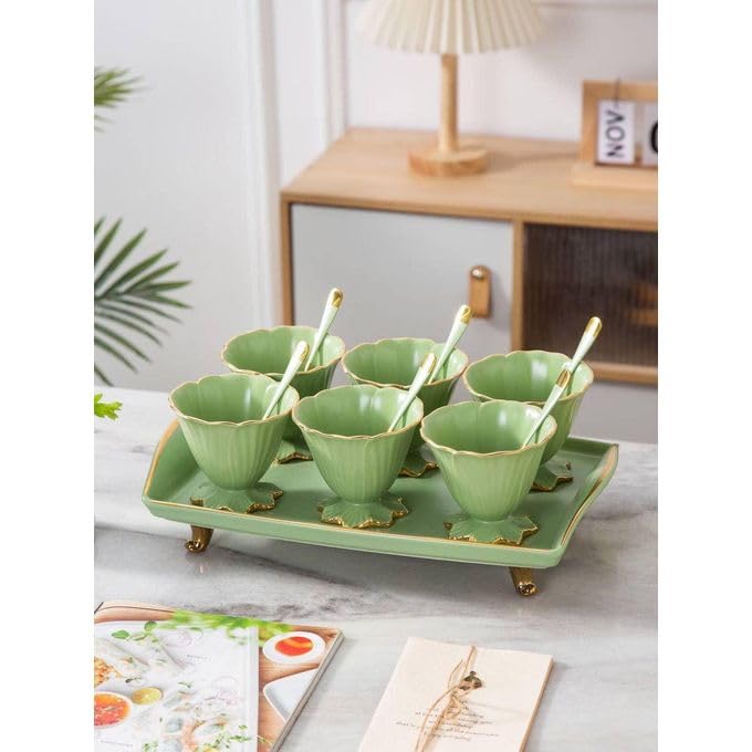 NOUR AL-MOSTAFA - Noor El Mustafa Porcelain Ice Cream Set 13 Pieces - Lime