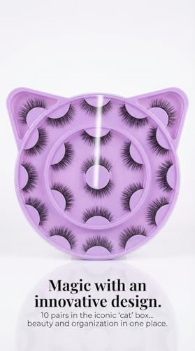 - INNOVATIVE "CAT" BOX DESIGN: the lashes come tied in a unique cat shaped box, making them a distinctive and attractive piece in your makeup collection, easy to organize for quick access to every pair.