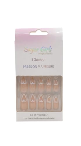 Nopatia - طقم أظافر من Nopatia صناعية 12 قطعة - تصميم "رسمة القلب" المفرغة عند الأطراف - أظافر لوزية للتركيب بالضغط لمظهر كلاسيكي رومانسي