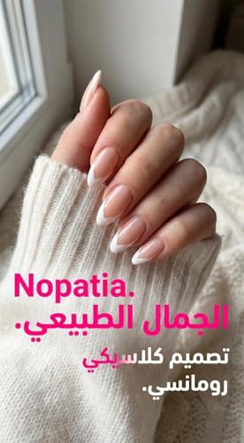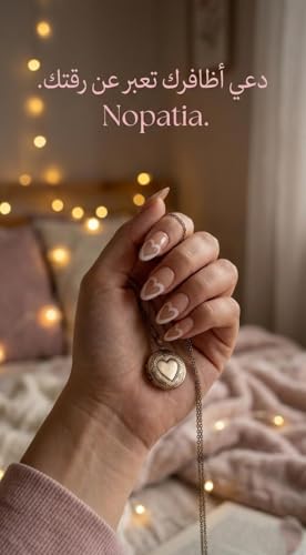 - تصميم القلب الرومانسي (12 قطعة): تميزي بلمسة أنثوية ناعمة مع طقم Nopatia المكون من 12 ظفراً. يتميز التصميم برسمة "قلب مفرغ" عند طرف الظفر (Heart Tip)، مما يعطي إيحاءً عصرياً ومبتكراً لأسلوب "الفرنش" التقليدي.