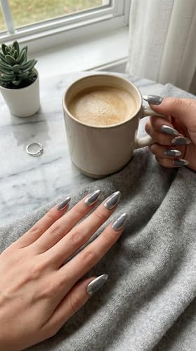 - HIGH QUALITY AND NATURAL LOOKING: precisely crafted to look like real acrylic nails. High quality silver plating and intense coverage that reflects light, while the gray base offers a warm look that suits various skin tones and formal occasions.