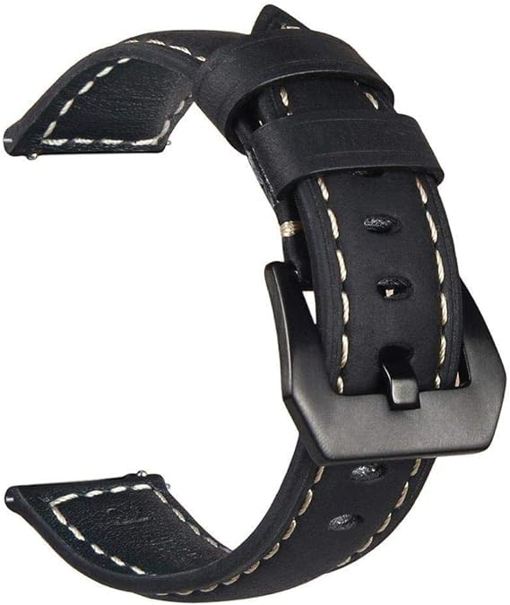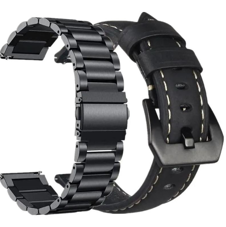 V Volt - Nopatia 2 Pack Stainless Steel Band Quick Release Strap with 22mm Premium Genuine Soft Genuine Leather Strap for Huawei Watch GT246/2e/GT/Active/GT 2 Pro/Huawei Watch 3/3 (Black & Black)