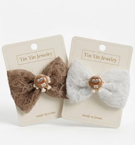 Nopatia - 2 Pcs Hair Clips with Elegant Lace Bow - Cute Cartoon Character Hairpins - Fashion Hair Styling Accessories for Attractive and Elegant Look