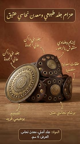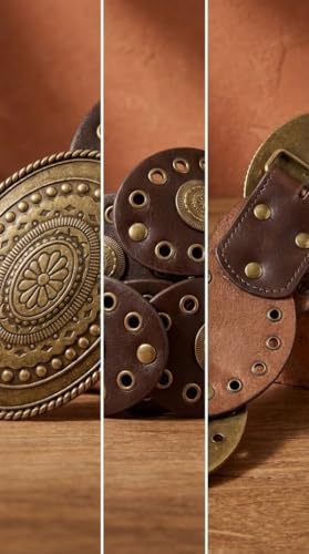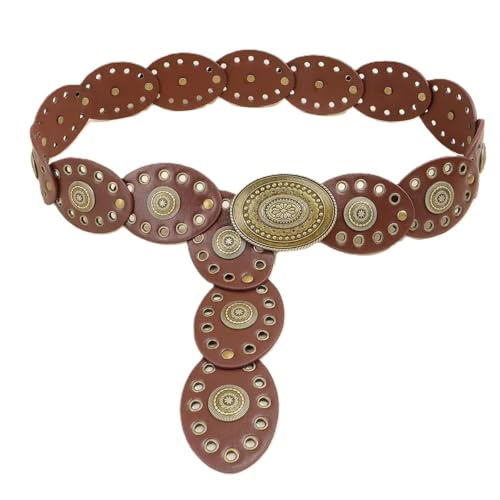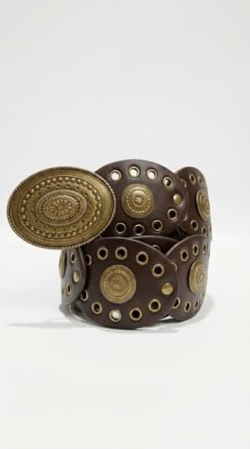 Nopatia - Brown Leather Waist Belt for Women Oval Rings Western Bohemian Style with Metal Eyelets and Large Bronze Buckle, Wide Vintage Belt Perfect for Jeans and Dresses to Add a Vintage Touch