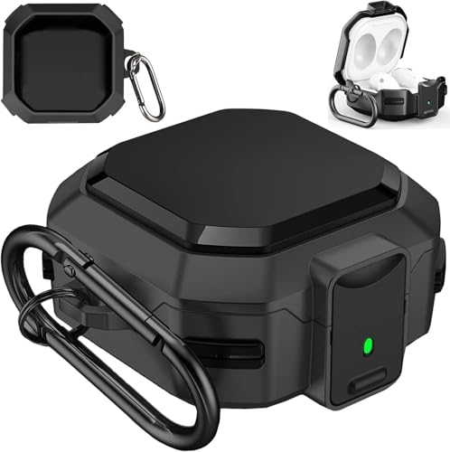 Nopatia - Case Compatible with Samsung Galaxy Buds 2 / Pro/Live, Soft TPU Case with Secure Lock and Keychain, Full Protection Shockproof Anti-Scratch (Black)