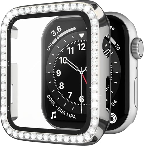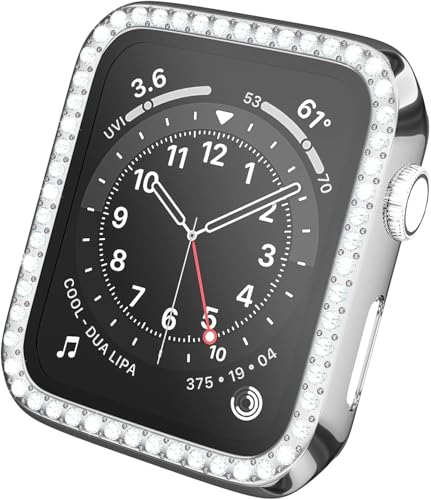 - Sparkle crystal elegance elevate your look with this sparkling stone encrusted protective frame compatible with women and men watch High quality rhinestone is securely fastened, making it a glossy Apple Watch case that adds a touch of luxury.