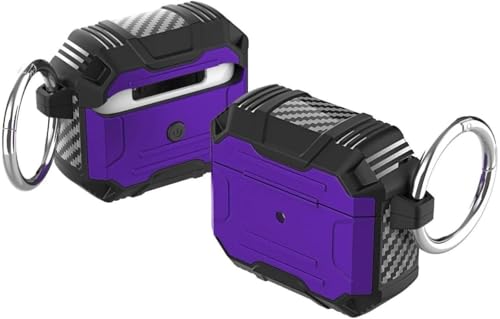 Nopatia - Compatible with Apple AirPods Pro Case 1.78 x 2.39 x 0.85 Inch, Carbon Fiber Design Heavy Duty Shockproof Anti-Scratch Protective Cover with Carabiner Clip (Purple)