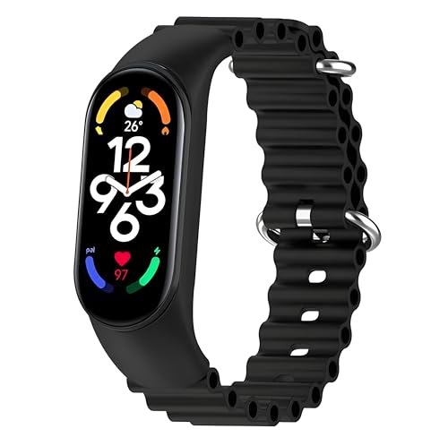 V Volt - Nopatia Compatible with Xiaomi Mi Band Silicone Replacement Strap Adjustable Stretchy Sport Strap for Women Men (Black)