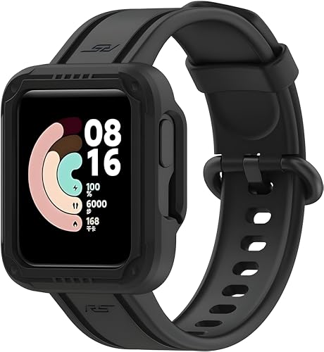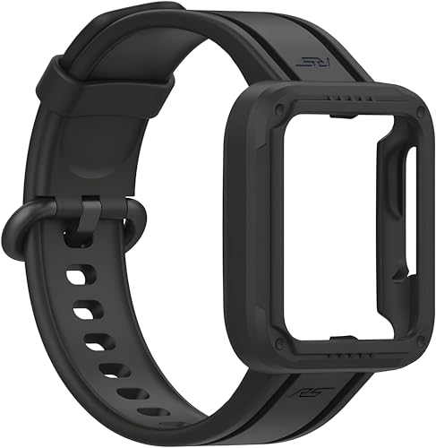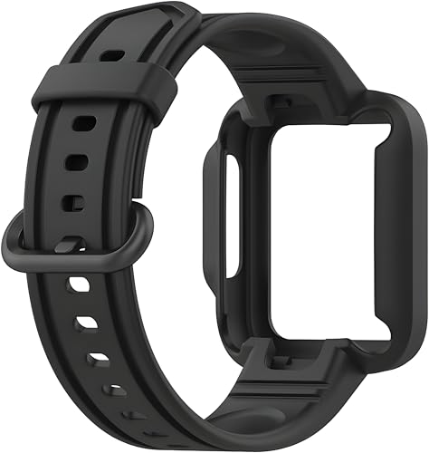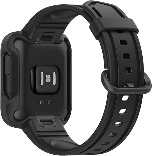 V Volt - Nopatia Compatible with Xiaomi Mi Watch Lite/Redmi Watch 2 Lite/Poco Watch/Redmi Watch 2/Horloge 2 Strap, Adjustable Soft Silicone Replacement Wristband with Cover (Black)
