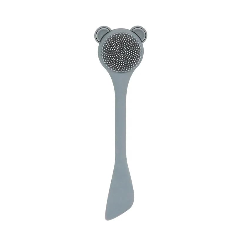 Nopatia - Dual Silicone Facial Care Tool, Exfoliating Cleansing Brush with Spatula for Mask and Creams, Cute "Bear" Design for Complete Healthy Beauty Routine (Grey)