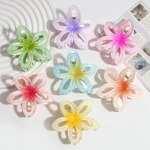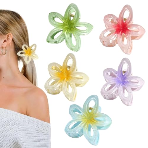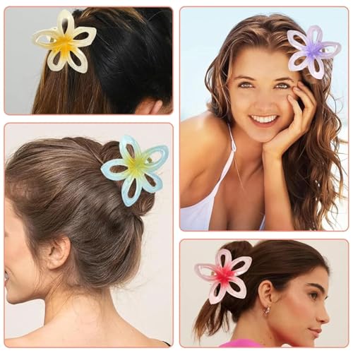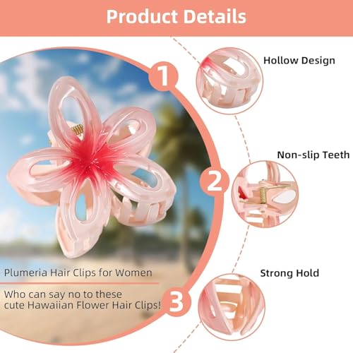 Nopatia - مجموعة مشابك شعر من Nopatia على شكل زهرة هاواي (البلوميريا)، مشابك مخلب اكريليك غير قابلة للانزلاق. توك شعر بتصميم وردة متدرجة الألوان للشاطئ والصيف للنساء والبنات (12 قطعة)