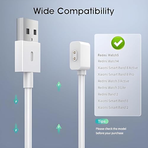 Nopatia - كابل شحن مغناطيسي USB منNopatia [شحن سريع] [مغناطيس قوي] [سلك TPE متين] وصلة شاحن للساعة الذكية لـ ريدمي واتش 5 و4 وباند 2 ومي باند 9 و8 برو واكتيف و3 لايت