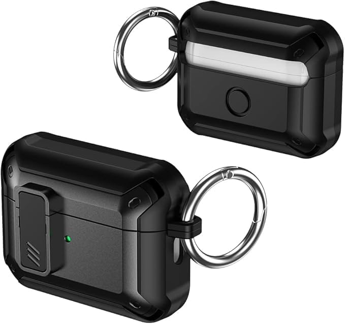 Nopatia - Military Case for Airpods Pro 2, Rugged Armor Case with Secure Lock and Metal Carabiner Clip Anti-Drop Anti-Scratch Heavy Duty Hard Shell for Daily Use (Black)
