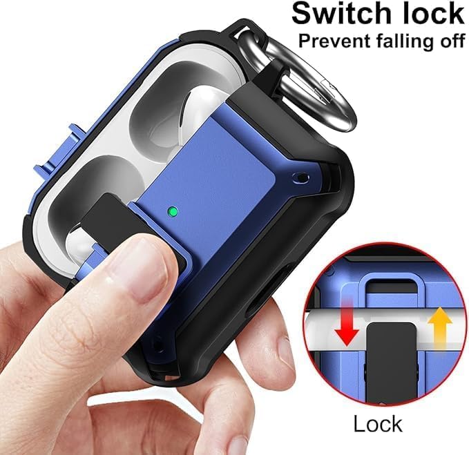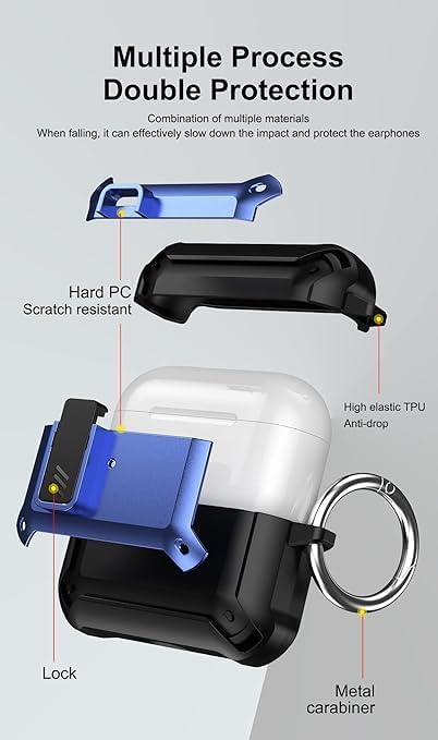 - Secure locking mechanism features a safety lock and a buckle to prevent the cover from auto or mistakenly opening, ensuring the earbuds stay completely securely inside the case even when you are doing sports or hard motion.